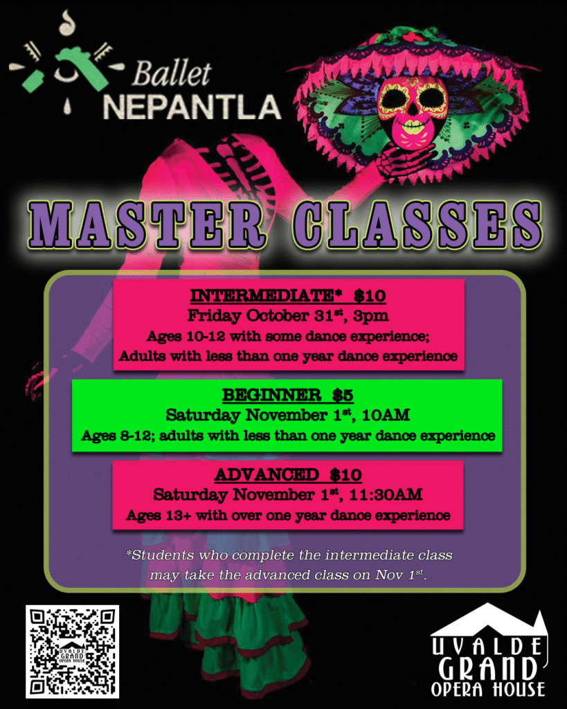 Ballet Nepantla offers master classes in Folklorico, Contemporary Ballet, West African, Classical Ballet, and Modern, ranging from levels beginner to advanced, and for all ages. This is an incredible opportunity to learn from professional touring dancers!